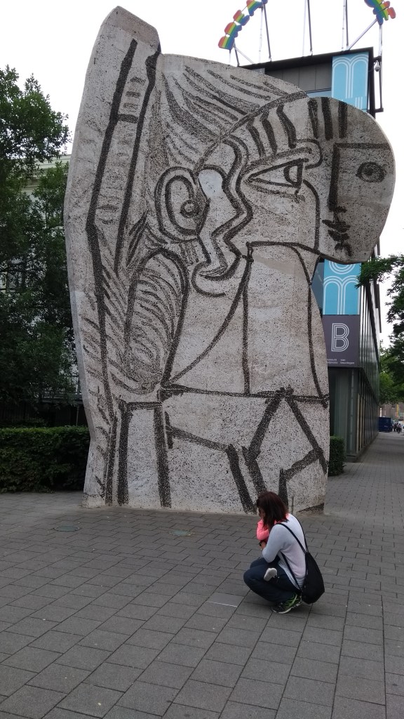 Continuamos la tarde con un paseo por un parque súper bonito Het park, la bahia y el puerto, pero se puso a llover y no pudimos disfrutar al máximo. Los parques y zonas de juego para niños son una pasada, nuestra peque esta súper encantada. Entramos a comprar en un súper aprovechando que no aflojaba y cuando paro, seguimos de camino hacia el hotel pasando por Witte y echando una cervecita en uno de los bares más famosos de la zona NRC. Justo en la entrada de la calle hay una escultura de Picasso que se llama Sylvette que también paramos a ver. Para cenar, hemos visto una pizzería al lado del hotel (es una cadena que se llama Sugo) en la que puedes compara trozos de pizza variaos por 3€ y en la parte de arriba tienen un baúl con juguetes para que puedan jugar los peques mientras los papis comen tranquilamente… nos ha encantado, seguro repetimos.