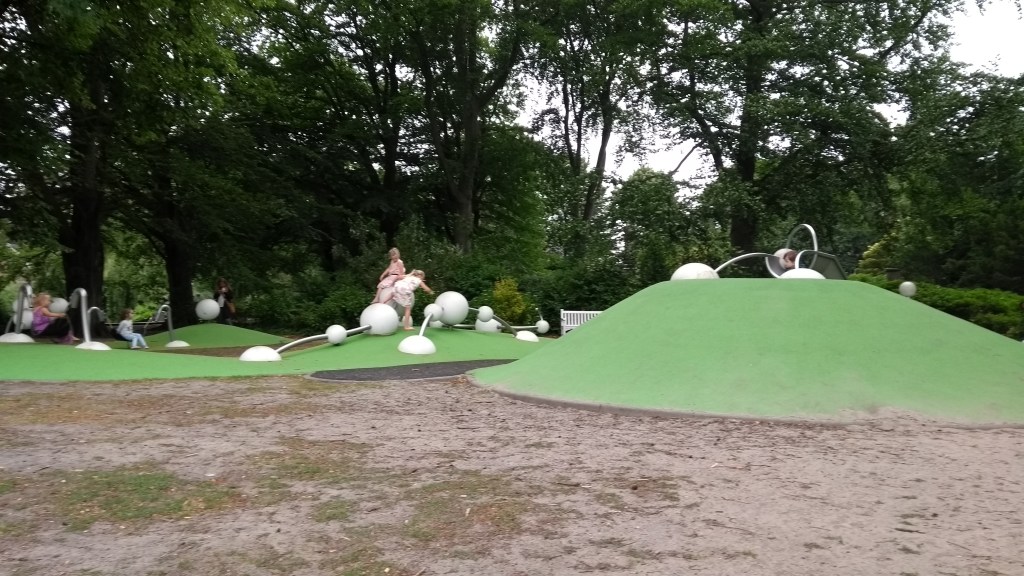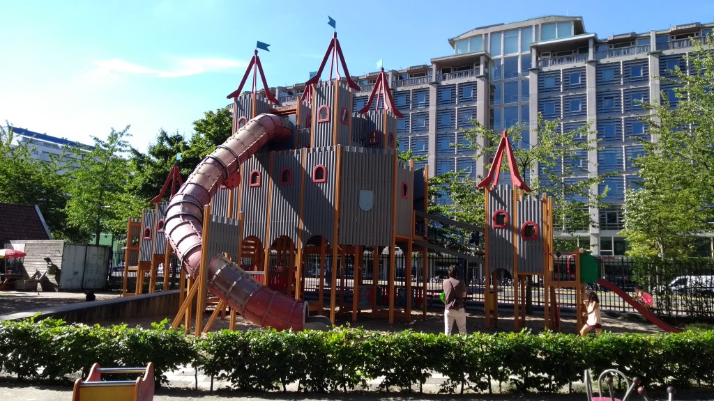 Por la tarde fuimos a la zona de Museos Museopark y como habíamos llegado pronto según el planning decidimos acercarnos al Euromast (es un mirador) pero hacia un poco de aire y lo estaban cerrando. En la parte de abajo había una cafetería y como es todo muy familiar en este país, había una zona de juego, así que decidimos tomas algo y jugar un rato para descansar a la espera de que mejorara el tiempo.