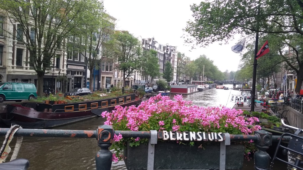 Todo va según lo previsto. Ámsterdam es muy muy bonito, pero un poco incomodo para moverse porque hay un montón de bicis y sobre todo muchísima gente, demasiada… pero es lo que tienen ser una de las ciudades con más encanto. Hemos estado paseando por el centro, el mercado de las flores y a la hora de comer hemos encatrado un parque con toboganes para jugar, así que genial. Por la tarde hemos paseado mucho, hemos pasado por delante de la casa de Anna Frank pero hay muchísima gente… hay que compensar e investigar las horas claves para poder visitarla. Nos ha llovido y hemos ido a un café. Luego hemos ido hacia el barrio rojo y la calle más estrecha de Ámsterdam, con la sorpresa de que ahí están ya las chicas en las puertas negociando… y eran antes de las 5 de la tarde. Hemos pasado también por el primer coffe shop que olía…. Jajajja y hemos terminado el día paseando por china Town y cenando en un Italiano.