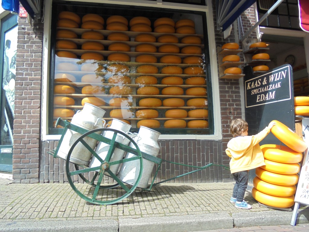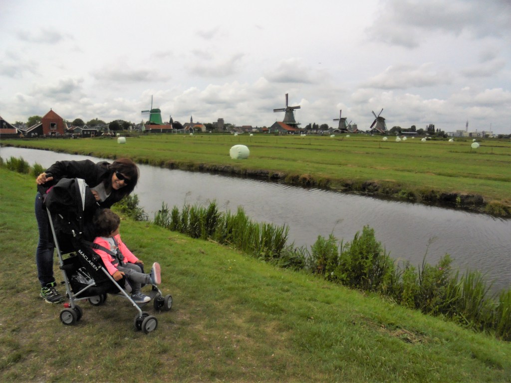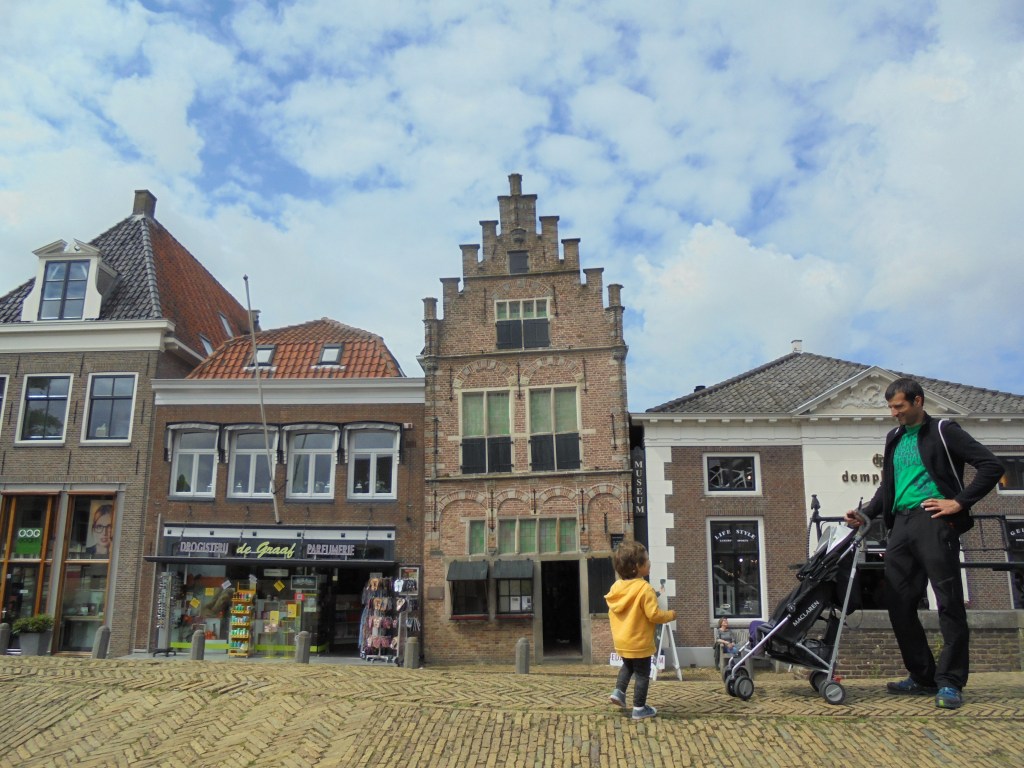 Hoy toca despedirse de Ámsterdam, coger el coche y conocer la vieja Holanda. Hay muchas compañías de alquiler de coches y en este caso la que más nos gusto fue Europcar. Esta vez buscamos 2 cosas claves a la hora de alquilar el coche; que pudiéramos alquilar sillita de bebe y que lo pudiéramos dejar en el aeropuerto de Rotterdam que era donde cogíamos el vuelo de vuela a casa. Al salir del sitio de alquiler fue un poco locura, pero en seguida estábamos en ruta tranquilamente disfrutando de los paisajes. El primer destino ha sido Alkmaar, queríamos ir al mercado de los quesos que tiene lugar los viernes por la mañana en el centro de la ciudad. Ir, fuimos… pero llegamos tarde, sólo vimos un par de puestos con quesos, pero bueno es lo que tiene llevar el ritmo de un bebe, aunque como no somos muy fans de los quesos, no nos importo mucho. Eso sí, disfrutamos de la ciudad que nos gusto mucho. Antes de empezar la visita, paramos a almorzar un poco y encontramos un bar con una zona para peques para jugar… y ahí nos enamoramos aun más de la adaptabilidad de este país que tiene en casi todos los sitios a las familias, es una maravilla. Después de callejear por la ciudad, nos dirigimos a Zaanse Schans a ver más molinos. Zaanse Schans es un sitio museo por donde puedes pasear, ver varios molinos por afuera y por adentro (nosotros ya no entramos porque habíamos visto los de Kinderdijk), has varios museos, casas típicas antiguas y varias tiendas de souvenirs. El sitio en si es muy agradable y se llega fácilmente. En la rotonda de acceso tiene un parking para poder dejar el coche por 9€ pero si te los quieres ahorrar y tienes suerte, puedes probar a acceder al polígono de enfrente a ver si encuentras sitio y acceder andando. Cuando acabamos nuestra visita fuimos a comprar y nos dirigimos hasta el siguiente B&B (Laag Holland B&B) que lo regentaban un matrimonio muy amable y después de dar una vuelta por el barrio y jugar en el parque, pudimos cenar en su terraza que daba directamente a uno de los cien mil canales que tienen en el país. Después de cenar y enterarnos que a la peque le había salido otro colmillo, nos fuimos a dormir y a descansar que mañana va a ser un día de mucha actividad.