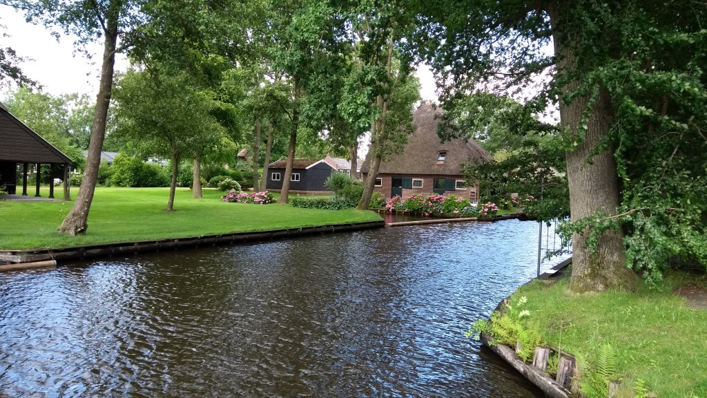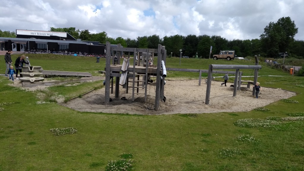 ¡Qué bien hemos descansado! Hora de desayunar, nuestra familia nos había preparado un súper desayuno con muchos de los productos ecológicos que ellos tenían como huevos de casa, repostería casera o productos que ellos mismos elaboraban como la mermelada. En la casita que teníamos la habitación también había otros huéspedes del sur de los Paises Bajos, con los que junto con la familia que lo regentaba hablamos un montón y aparte de intercambiar hábitos de diferentes países y estilos de vida, nos dieron alguna recomendación para terminar el viaje o para un siguiente. Así que después de desayunar y jugar un poco en el B&B con los juguetes que nos dejaron de los niños hemos decidido cambiar el planning y subir hacia el lago Lauwersmeer, que es un parque natural como unas marismas. También es una zona de ferris para poder visitar las islas. La verdad que la zona está muy bien, hay varios camping, zonas para jugar los niños, un buen sitio para pasar un buen rato. La verdad que hemos flipado con los parques infantiles de aquí, hay arenero gigantes, con fuentes de agua para hacer barrete, un montón de elementos muy diferente a los de España. Por la tarde nos dirigimos a nuestro siguiente destino Giethoom, un pueblo de cuento de hadas… es muy bonito, aunque la verdad que yo tenía muchas expectativas y se me quedo pequeño el lugar, pero sí que es verdad que tienen mucho encanto. Cenamos en el propio hotel y descansar… ya nos queda poco. Por cierto, una cosa que nos ha llamado mucho la atención en este país es que es completamente plano… no hay ninguna cuesta, pero ninguna, ni dentro de los pueblos o ciudades, ni en la carretera. Las únicas cuestas que hay son las de los puentes para salvar los canales, no me extraña que todo el mundo se mueva en bicicleta, es una maravilla.