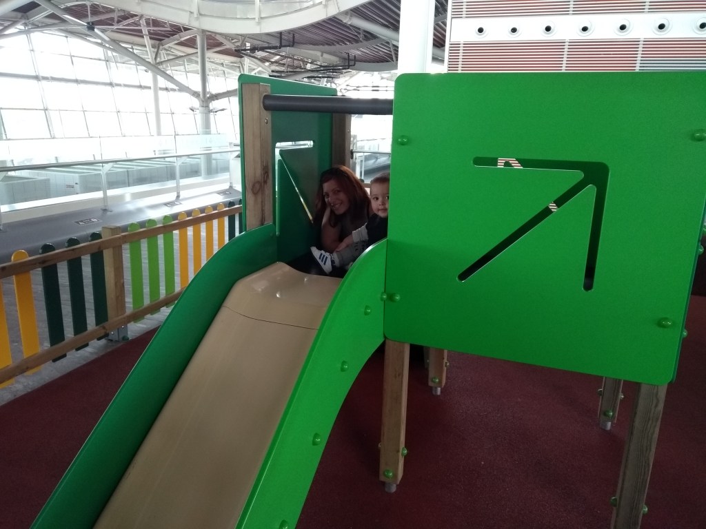 Pasadas las 2 del medio día, salimos de casa de camino al aeropuerto de Zaragoza con tiempo para aparcar y facturar. En poco más de 1 hora llegamos al Parking 1 del aeropuerto, facturamos y subimos a la zona de arriba a esperar ya que hay una área de juegos para los pequeños que les va genial antes de tomas un vuelo y también se puede ver la llegada y salida de los aviones. Como el aeropuerto de Zaragoza es muy pequeño, no hace falta que pases el control muy pronto y más si vas con peques que no pueden estar quietos…