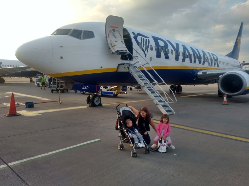 La compañía elegida es Ryanair que son los que operan en Zaragoza. Con Ryanair los mayores de 2 años ya pagan y ocupan asiento (salvo en el momento de despegue y aterrizaje que tienen que ir sentados encima de un adulto). Por otra parte, los menores de 2 años no necesitan pagar ni ocupar asiento, aunque si que se paga un suplemento. Nosotros no cogimos el asiento completo y fue el bebe encima nuestra todo el rato, íbamos más justos de espacio pero lo llevamos bien, además así pudimos ir los 4 en la misma fila (aunque si quieres puedes pagar un asiento pero en este caso el bebe deberá viajar en silla especial o tipo maxicosi).