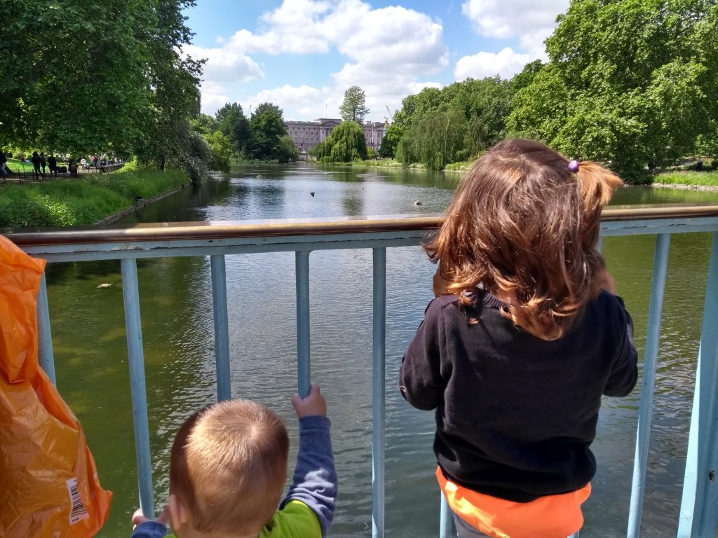 Good morning London!! Después de haber descansado y haber tomado un buen desayuno… comenzamos fuerte este viaje. Estamos alojados en pleno Notting Hill a 5 minutos andando de Hyde park, mejor imposible. El primer destino elegido para visitar es Buckinghan Palace e intentar ver el cambio de guardia (ya que la otra vez no pudimos verlos). Desde Hyde Park cogimos el bus 148 y en 32 min aproximadamente estábamos en Wellington Arch que era la parada más cercana y ya comenzamos a andar hasta el palacio. En la web están los horarios de los cambios de guardia y los días que hay eventos especiales. Esta vez sí que lo hemos podido ver y disfrutar de alguna de las piezas que toca la banda. Antes de que acabaran nos fuimos hacia Birdcage Walk para verlos pasar otra vez sin tanta aglomeración de gente ya que hacen otro mini cambio de guardia en un cuartel de esa misma calle. Pensábamos ir también a este segundo cambio de guardia… pero decidimos que era hora de que los peques disfrutaran un poco en un parque, así que justo a la entrada de James´s Park hay una zona para ellos donde jugamos un rato antes de continuar nuestro paseo por el parque.