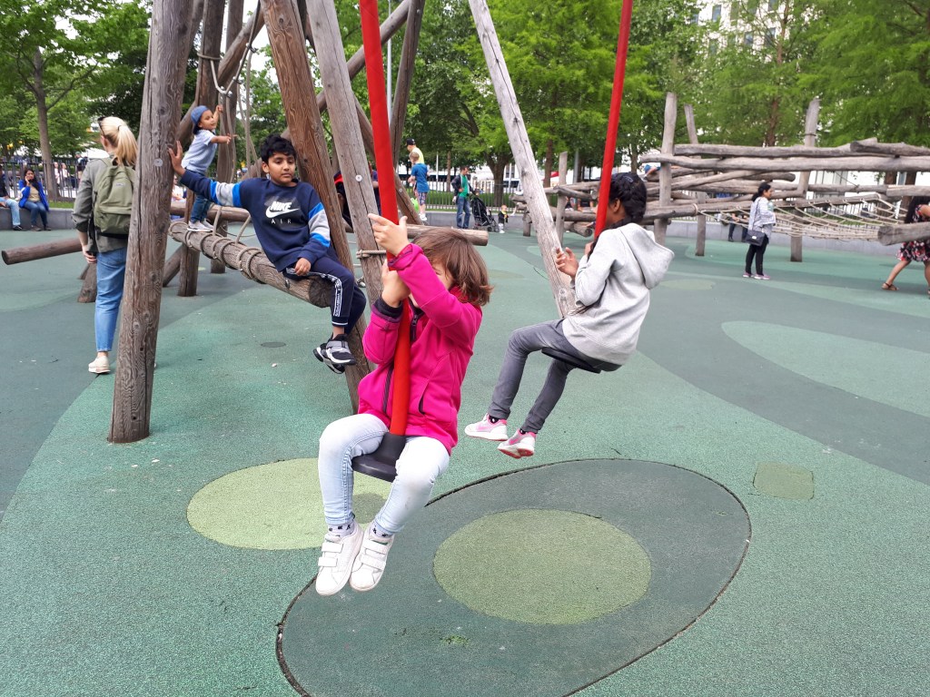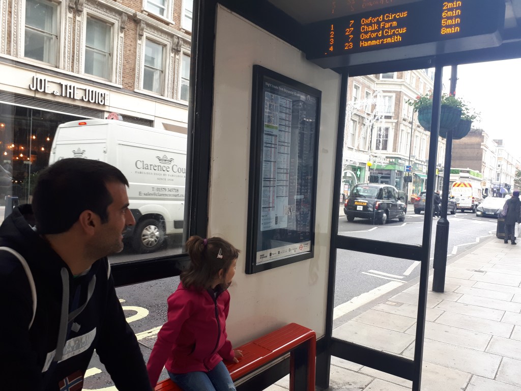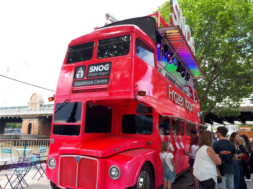 Después de haber descansado un poco, continuamos nuestra ruta hacia Trafalger SQ. Cómo era de esperan nuestra pequeña escaladora se quiso subir a uno de los leones del monumento, le encanto. Luego nos dirigimos hacia el Big Ben y el parlamento por Whitehall st donde pudimos ver, de casulidad, el cambio de guardia de los caballos que se alojan en The household Cavarly Museum (se puede visitar y hay descuento de 2×1 con los billetes del Stansted express). Casualidades de la vida… de repente vimos que habia un monton de prensa en la calle y resulta que acabada de anunciar su dimision la primera ministra Theresa May. De camino, paramos en un súpermercado a comprar algo de fruta y alguna cosa para ir comiendo (nuestras comidas en los viajes son muy rápidas y la fruta no puede faltar). Tuvimos la “mala suerte” de que la torre del Big Ben estaba en obras y no la pudimos apreciar como nos hubiera gustado… pero como la habiamos visto, no nos parececio tan mal. Cruzamos Westminter Bridge disfrutando mucho muchísimo de las vistas y nos dirigimos hacia el CJD Memorial Park que es un paseo con unas vistas increibles, donde hay unas mesitas para poder pic nic que nosotros las aprovechaos para comer. Al acabar fuimos hacia London Eye, ninguna de las veces hemos subido… las vistas tienen que ser expectaculares, pero personalmente no nos compensa el tiempo de espera. Estuvimos paseando por la zona y “nos encontramos” con el Snog Frozen Yogurt que es una heladeria dentro de un autobus tipico de 2 pisos pero Rosa, al cual puedes subir y disfrutar dentro de tu helado, si no te apetece subir, también tienen unas mesitas afuera muy cuchis. Cuando acabamos, buscamos la zona de juegos que hay en Jubilee Park para que los peques pudieran correr un rato.
