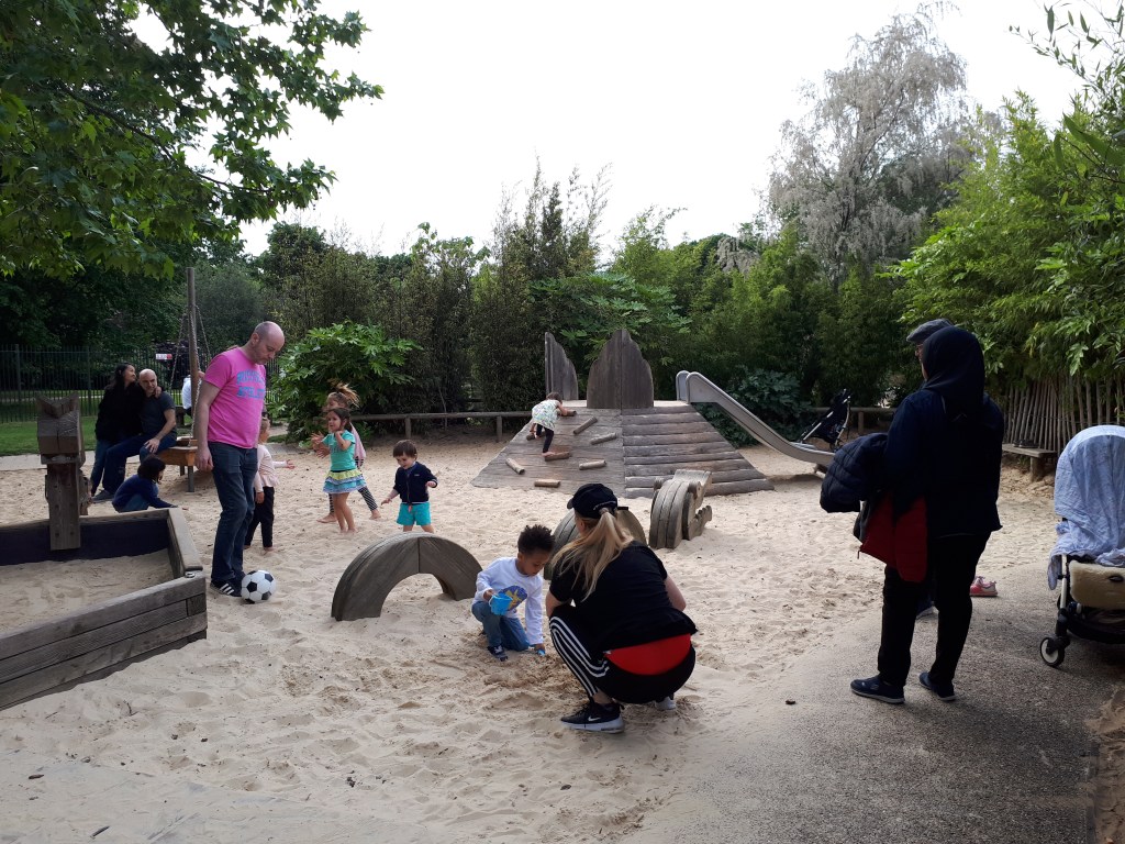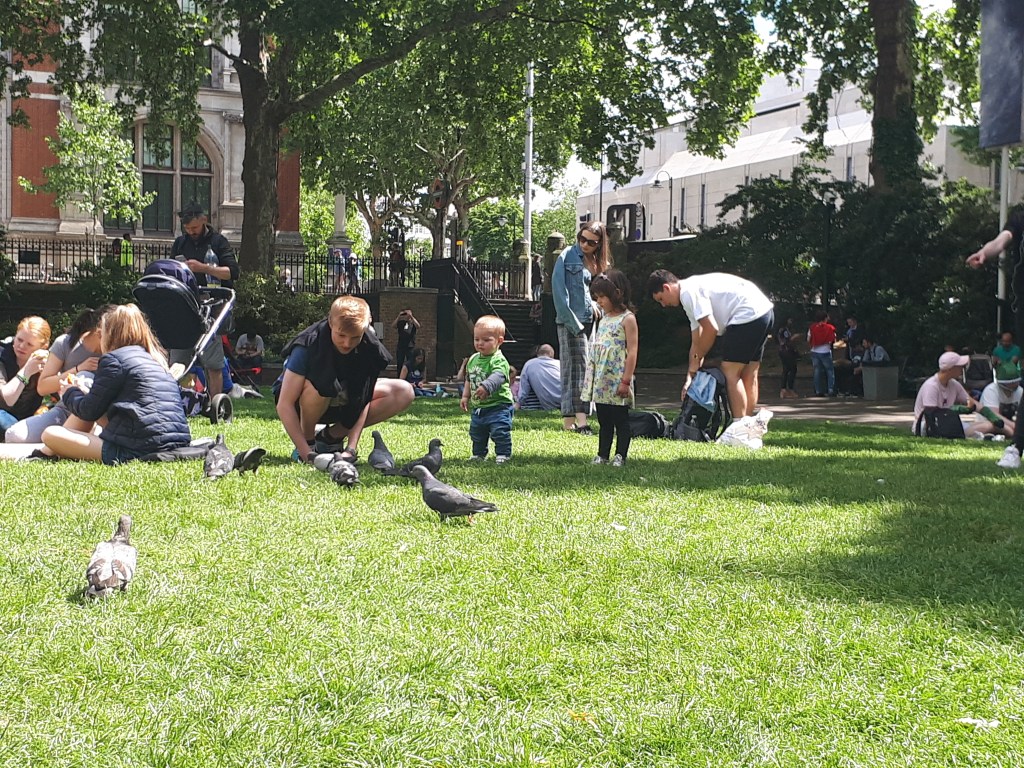 Esa calle es donde están los teatros y tienen unos cuantos musicales para ver (en el viaje anterior fuimos al de We will Rock you de queen y lo disfrutamos un montón). En una de las calles perpendiculares es donde empieza china town y por donde continuamos la segunda parte del tour. Desde ahí fuimos a encontrar un rinconcito que se llama Neal´s Yard muy pintoriesco que nos gusto mucho y de ahí fuimos a comer en Covent Garden, concretamente en The Gentlemen Baristas Covent Garden en la parte de abajo. Despúes de comer dimos una vuelta por las tienda que hay por ahí y esperamos a ver a un@s chic@s que dan nimi conciertos para, con las propinas, mantener el lugar. Nos acercamos a Jubilee Market, pero los peques estaban tan cansado que ya no entramos, merendamos en la calle viendo un grupo que estaba tocando canciones de U2 y disfrutando el momento y cuando repusimos un poco de fuerzas cogimos el metro y volvimos a acabar el día en el parque memorial de Diana… ¡Es genial, nos encanta! Nuestra princesa lo primero que hace al llegar, se descalza y va al súper arenero. Además tienen fuentes para hacer barrete. Hoy tocaba cenar rápido en el hotel y a dormir que estamos muy cansados.