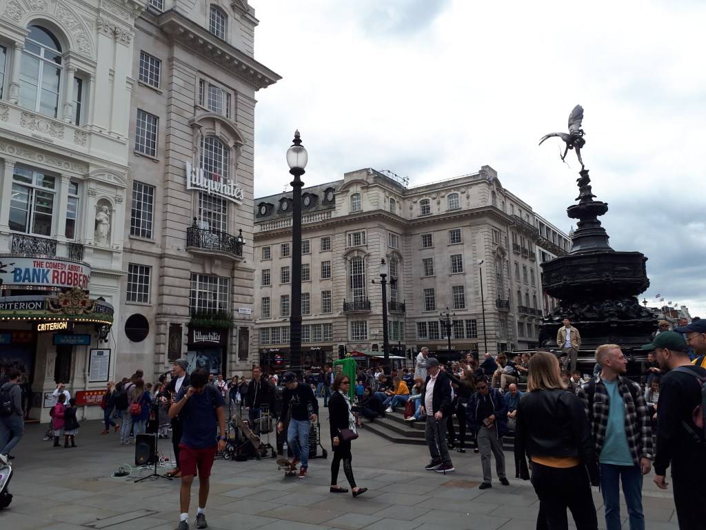 De momento todo va según lo previsto, estamos disfrutando mucho. Hoy vamos a hacer un día de turisteo muy British y vamos a pasear por el centro de la ciudad. Lo primero que vamos a hacer es visitar la tienda de Lush que tantas ganas tenía. Nos ha súper encantado y hemos comprado. Nuestra primera parte del tour de hoy consiste en pasear por Oxford st, Carnaby st, Regent St y llegar a Picaddily Circus. Cerca de la plaza, en Shaftesbury Ave hay un restaurante que queríamos ir a comer que se llama Rainforest Café, que aunque es un poco caro, nos pareció muy buena idea para ir con los peques. Entramos y para acceder al restaurante teníamos que bajar unas escaleras y dejar los carros arriba. Casualidades de la vida, nuestro bebe se había quedado dormido y no nos dejaron bajar el carro y sólo arriba no lo íbamos a dejar, así que media vuelta, como en la parte de arriba es todo tienda con cosas súper guay para los peques, compramos un unicornio que le encanto a nuestra princesita y continuamos el tour.