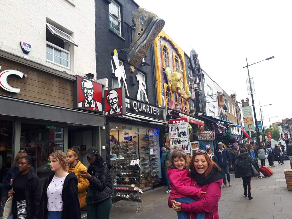 Que ganas tenía de este día… ¡volvemos a Camdem! Como es uno de los sitios imprescindibles por excelencia… decidimos ir entre semana que seguro habría menos gente y acertamos. Cogimos la línea 27 Chalk farm desde cerca del hotel y en un ratito ya estábamos ahí. Es un sitio que a mí me gusta mucho por el ambiente en general que me transmite, no sé. Estuvimos paseando, entremos en la tienda Cyberdog que es muy curiosa y los peques flipaban tanta música y luces… y luego estuvimos buscando una falda que se quería comprarse mi princesita. Quería una de luces… no encontramos ninguna, al final encontramos una con pompones hecha a mano que nos enamoro y ya la estreno. Decidimos comer algo por ahí ya que hay muchos food truck para elegir y nos sentamos en una mesa larga compartiendo momento con gente diferente. Hoy está siendo un día tranquilo y como mañana dan aguas, vamos a aprovechar a ir por última vez al parque de Diana y despedirnos de uno de los mejores sitios de todo Londres.