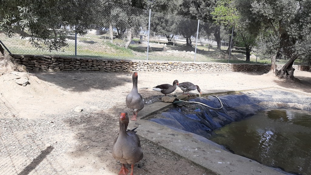 El fin de semana pasado celebramos el comienzo de la primavera visitando la granja aventura de Barbastro. El acceso está muy bien señalizado, aunque hay que estar pendiente a todo los carteles de señalización y la gran cantidad de agujeros que te encuentras a lo largo de todo el camino. Es un buen lugar para pasar el día con los pequeños de la casa. Se pueden ver diferentes tipos de animales de granja como gallinas, patos, avestruces, burros… y muchos más. Como estos animales están muy acostumbrados a la gente, enseguida se acercan para saludar. A mitad del recorrido en la zona de la hípica, está el acceso al museo escultórico a través de un puente colgante que encanta a los más peques. Recorriendo los senderos de esta zona, se esconden entre la vegetación una gran colección de esculturas de animales muy variados donde puedes encontrar una girafa, una tortuga y hasta un cocodrilo entre otros. El horario de visitas es de 10:00 a 18:00 y las entradas cuesta, la general 9€ y la de 4 a 12 años y jubilados 7€, los menores de 4 entran gratis. Con la entrada general también se puede jugar a un mini golg, tirarse por una minitirolina y disfrutar de un viaje en las camas elásticas de la entrada, no antes de haber intentado salir de un laberinto de lo más entretenido.
