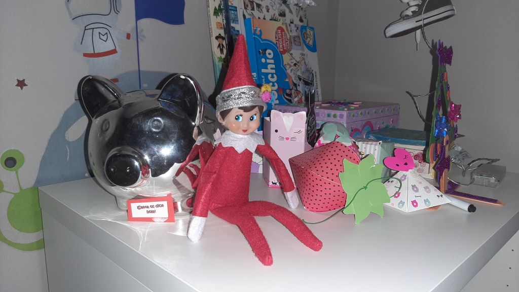 Nuestro elfo se llama corazón y lo adoptamos en el 2020. Es un pelín travieso y nos encanta despertarnos y buscar por toda casa a ver en qué lugar decide aparecer…. y que trastada ha hecho a su llegada.