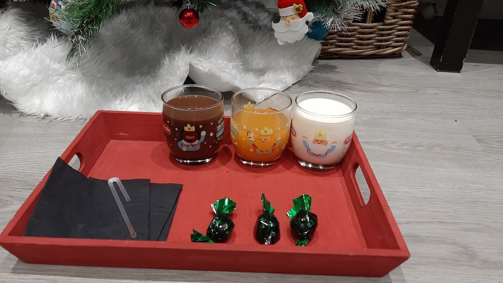 Volviendo a la tarde/noche del día 5 de Enero, sus Majestades, suelen acudir a las localidades en cabalgata para que los más pequeños de la casa puedan verlos. Cuando acaba, hay que preparar en casa todo para que vengan a visitarnos por la noche… agua para los camellos, comida para los Reyes y lo más importante, sacar las zapatillas al balcón o ventana para que cuando pasen sepan que en esa casa hay niños y tienen que parar a dejar regalos.