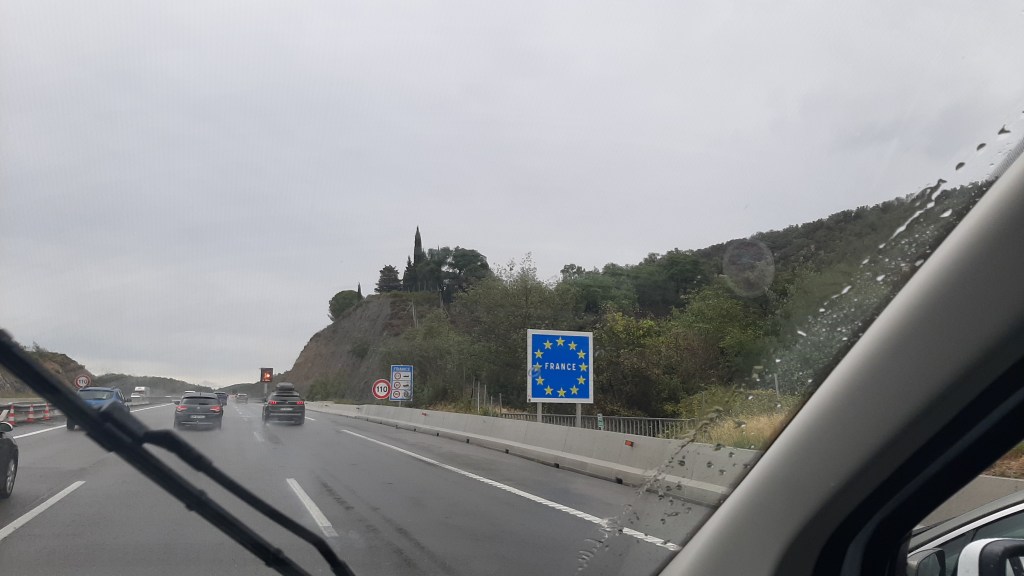 El primer día hicimos unos 650 km y llegamos hasta Mornas. Hemos conducido unas 7 horas y nos ha tocado hacer varias paradas. La última para dormir la hicimos en el AC de Mornas, que caía bien porque estaba a mano de la autopista, pero es un poco ruidosa. La idea era hacer unos cuantos kms más, pero pillamos una retención y un tráfico en la frontera de la Jonquera que nos pareció una p**a locura. Paramos a repostar y nos digeron que no era ni medio normal lo que estaba pasando… pero bueno supongo que coincidió final de Agosto, domingo y día de lluvia (no playa) y justo ahí hay un centro comercial y varias empresas de ocio.